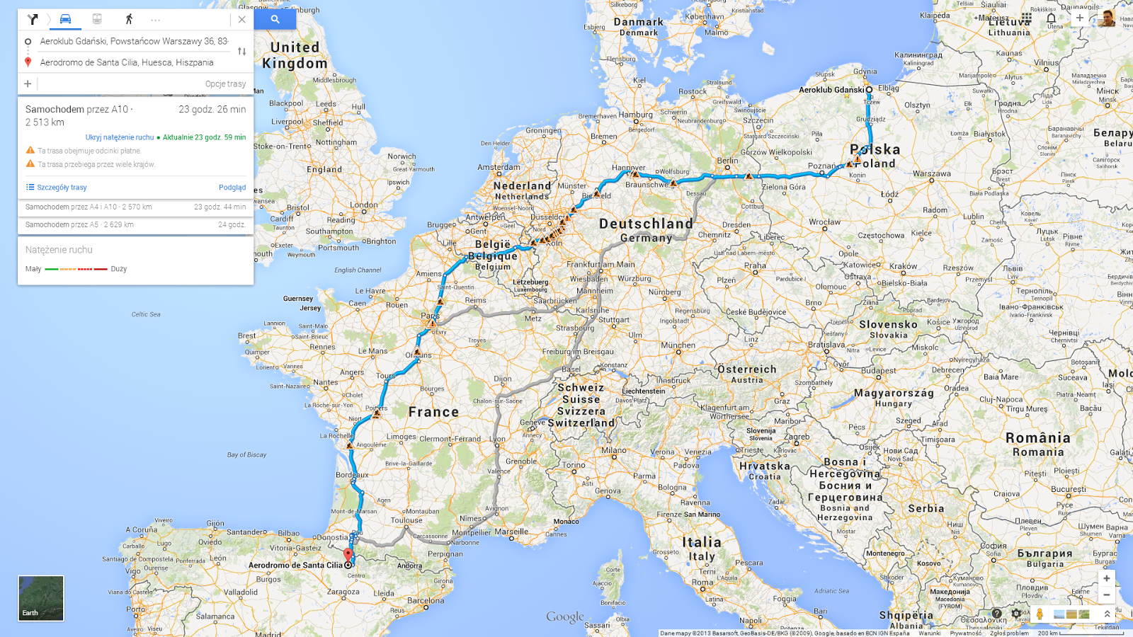 Spod Aeroklubu Gdańskiego wyjechaliśmy zaraz po 17:00 w czwartek. Po kilku godzinach i zaliczeniu płatnych A1 i A2 dowiozłem "wesoły autobus" do granicy z Niemcami, gdzie przekazałem pałeczkę kolejnemu kierowcy. Przez Niemcy przejechaliśmy w nocy dzięki czemu poza jednym objazdem nie spotkaliśmy żadnych utrudnień w ruchu. Belgię całą przespałem (jak zresztą reszta niekierującej brygady) i tylko dzielny Andrzej trwał na stanowisku. Jak twierdzi jechało się bardzo przyzwoicie.